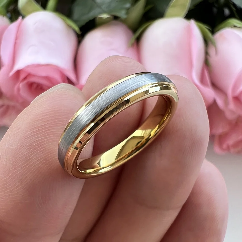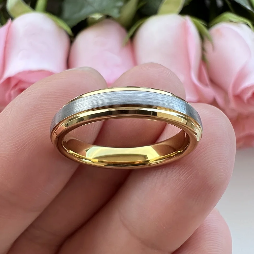 Coolstyle Jewelry 4mm Wholesale Two Tone Gold Plated Tungsten Finger Ring Women Men Dropshipping Fashion Engagement Wedding Band